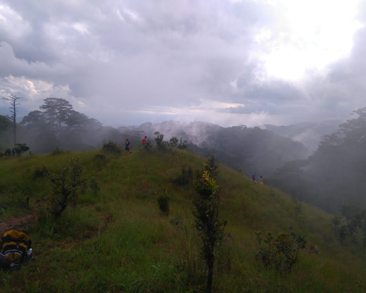 Đỉnh đồi nơi tụi mình cắm trại. Mọi người đang túa ra đi tìm củi.