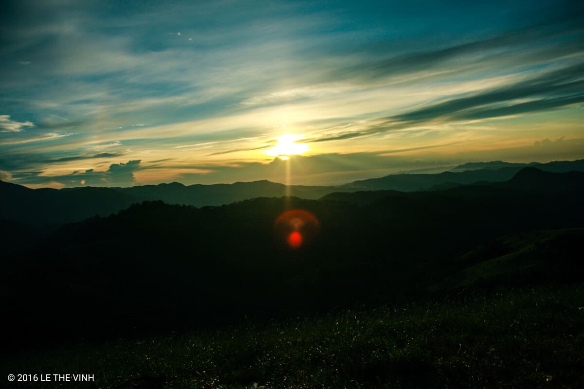 Cuối cùng cả team thống nhất quay lại hạ trại trên đỉnh đồi chờ trời sáng rồi quay lại đường cũ. Thế là 2 căn lều được dựng lên giữa đồng không mông quạnh. Mọi người tỏa ra đi vệ sinh, tìm củi nhóm lửa, nấu bữa tối. Xa xa ở ngọn đồi phía sau cũng là 2 căn lều màu xanh chói lóa của nhóm khác.